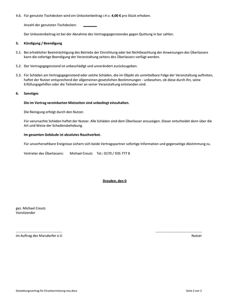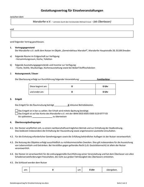 Gestattungsvertrag für Einzelvermietung [...]